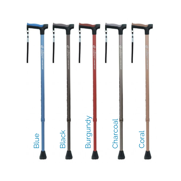 Designed to provide stability and confidence with every step. Aluminium cane Flex-Grip Tip: Designed to fit comfortably in your hand. Handle has rubber cushioning for leaning on walls and tables
