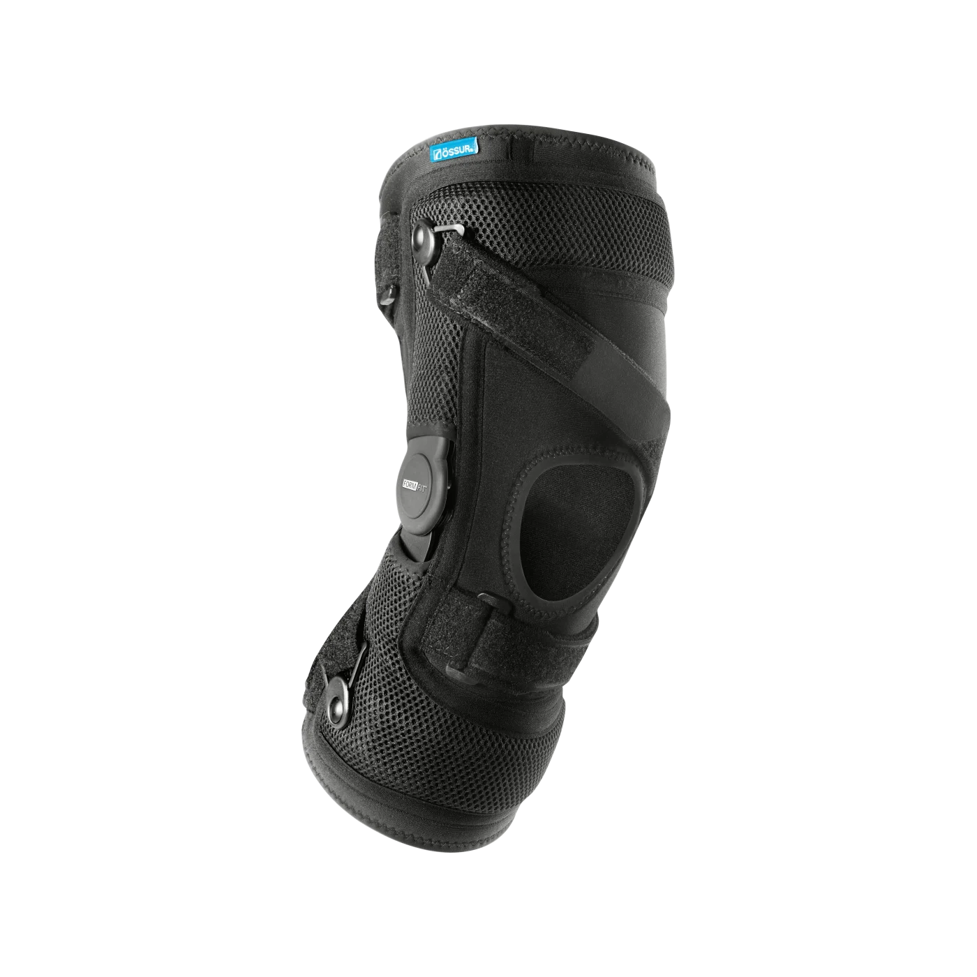 The Ossur Formfit Knee MCL provides external stability and protection for low to medium contact or impact activities and while recovering from injury. A unique, single hinged, hybrid wrap/sleeve design sets this brace apart from the competition. The lateral, range of motion hinge keeps the medial side free of obstruction. The Dynamic Force Strap aids in the resistance of valgus forces during knee extension, while the adjustable tibial strap improves suspension by minimising slippage.