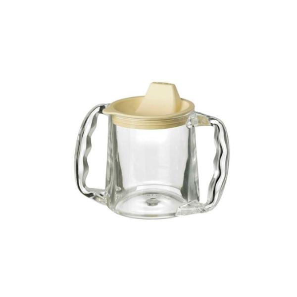 The Homecraft Caring Mug has a wide stable base with two large contoured and angled handles, which enables it to be held in the correct position for drinking. The lid has a well designed spout, and matches the Caring Cutlery range. It is useful for those with tremor or who cannot sit upright. The mug is microwave oven and dishwasher safe.