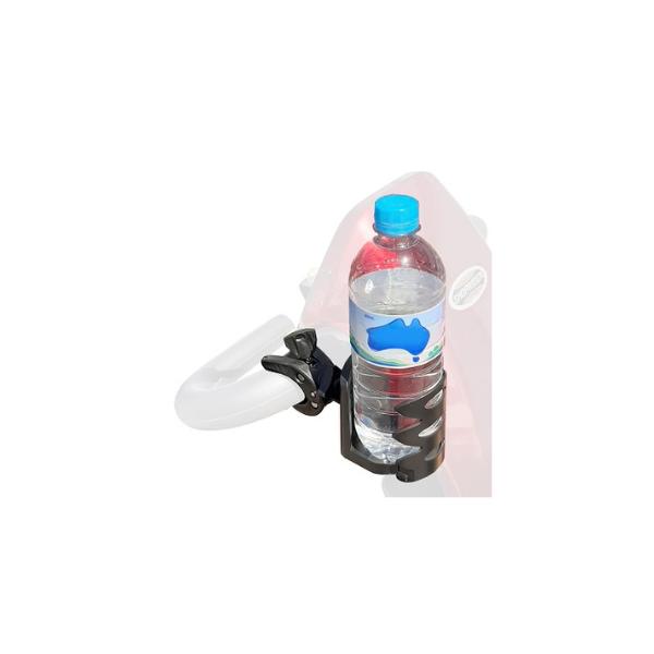 The Shoprider Cup Holder is an accessory for Shoprider mobility scooters. The cup holder adjusts to take most bottle sizes from 55 to 70 mm (2 to 3"). It is easy to attach, adjust, and re-position water bottles or keep cups. The adjustable mount can attach onto any tube or ledge up to 40 mm (2") rubber grips.