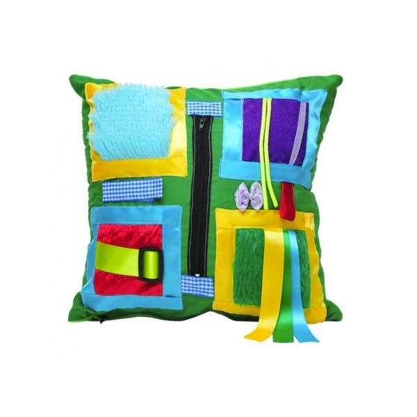 The cushion uses a range of colours and a combination of materials to create sensations for the user.